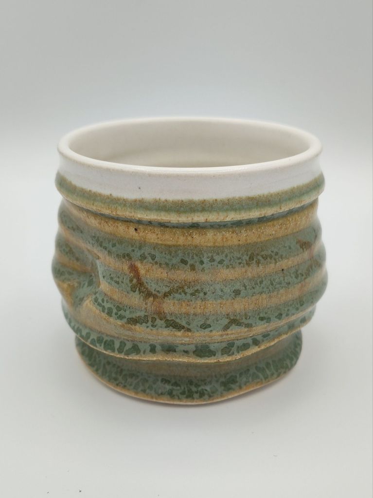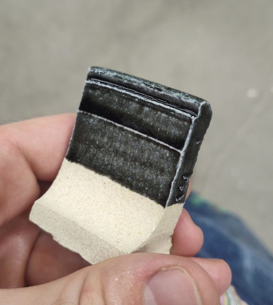 It can from throwing a bunch of iron oxide and a bit of lithium into a calcium matte base recipe, and seeing some really interesting yellow dust appearing. It’s kind of similar to teadust style glazes, but whatever crystals are forming are very small, hence the name silty brown.