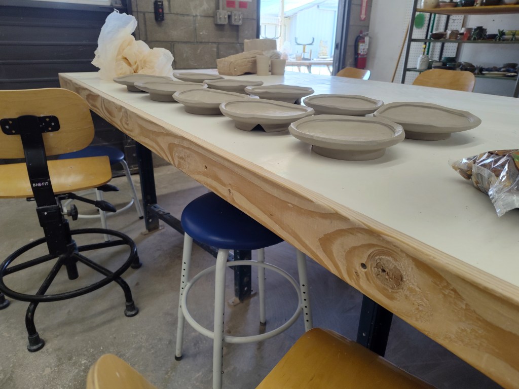 I made my first batch with the brown clay pictured, and it was a bit of a learning process, but the second batch went really well. They’re pretty time and space efficient for me, and I think I like the oprganic shapes. I’ll likely make more but I might make a slump mold I prefer better than the one I used for these batches.